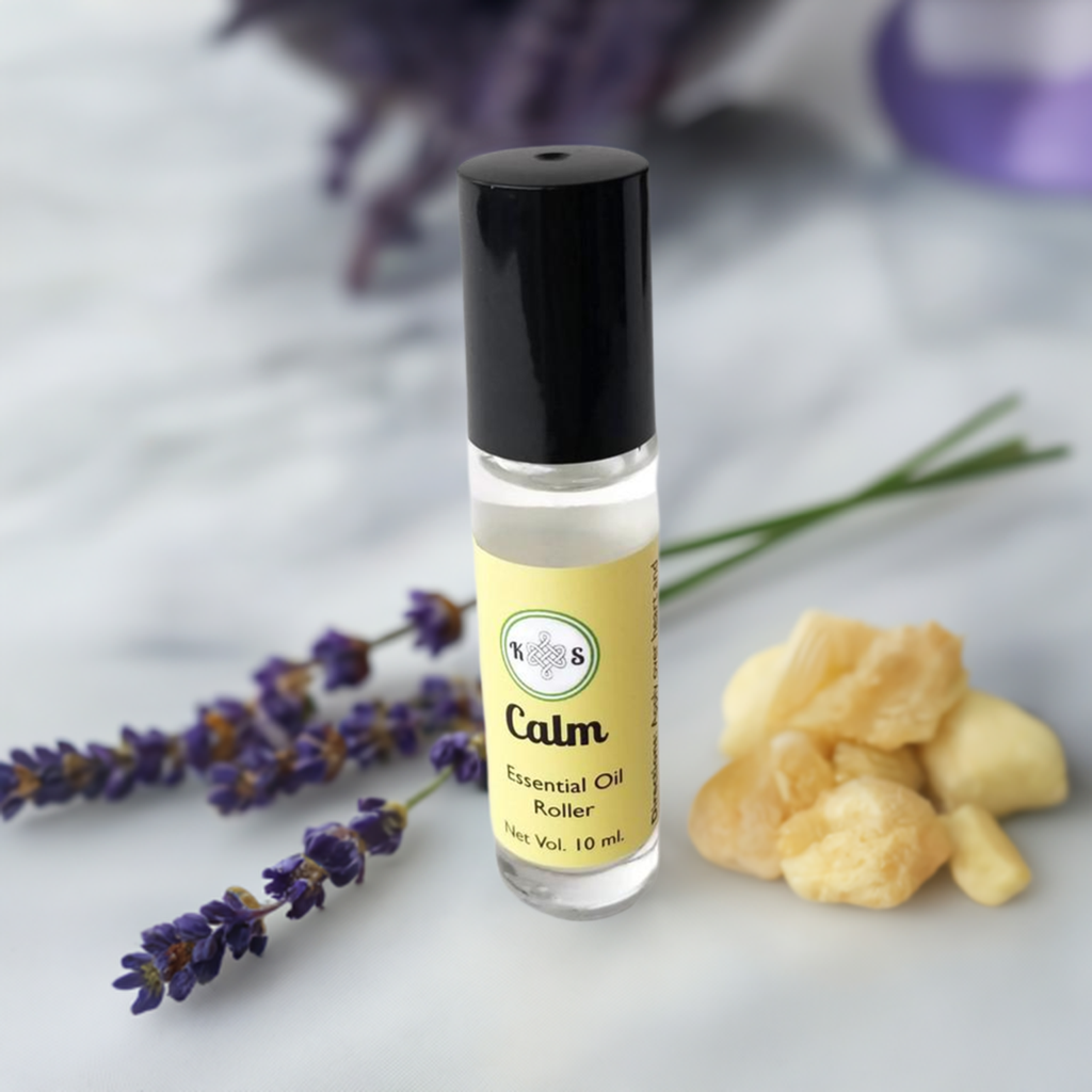 Calm was blended with a mix of Lavender, Orange, Cedarwood, and Frankincense to help you relax and focus your energy.