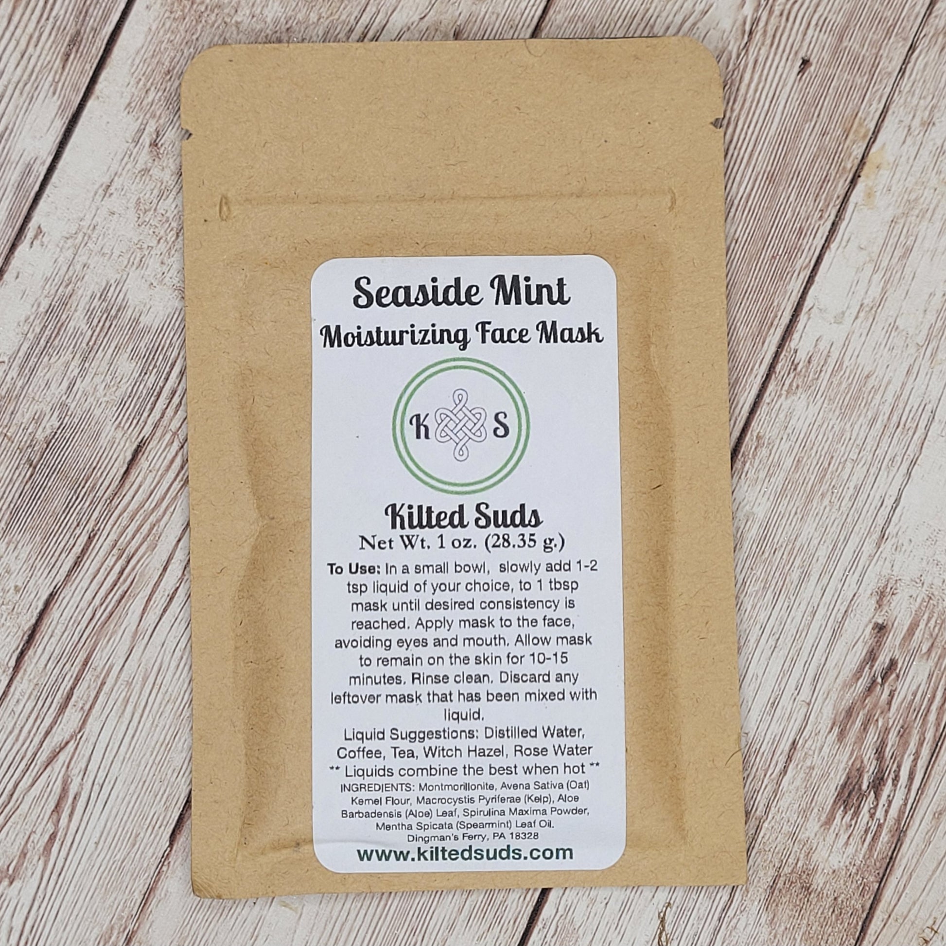 In a small bowl, slowly add 1-2 tsp of the liquid of your choice (see suggestions below), to 1 tsp Seaside Mint Face Mask until desired consistency is reached. Liquids combine the best when warm/hot. Apply mask to your face with your fingers or a brush, avoiding eyes and mouth. Allow mask to remain on the skin for 10-15 minutes. Rinse clean.