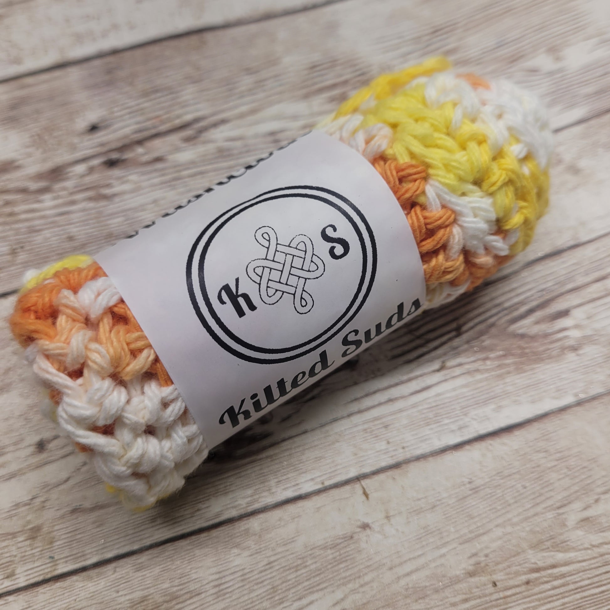 Each piece is thoughtfully crocheted by hand, ensuring a unique texture that’s gentle on skin yet sturdy enough for everyday use. The breathable cotton fibers make them highly absorbent, quick-drying, and long-lasting—perfect for pairing with your favorite Kilted Suds handmade soaps.